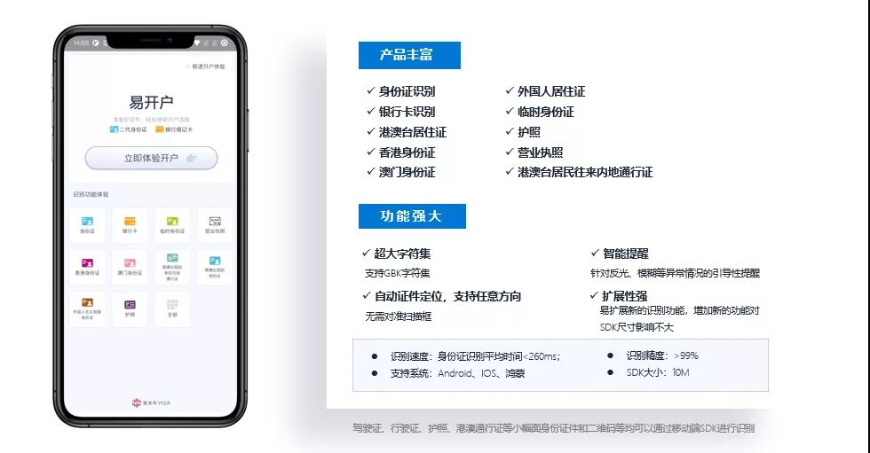 “DOM SDK的市場需求非常大,證券開戶,銀行開戶,投保理賠,汽車金融……等大量應用卡證識別,且移動端需求量極大的業(yè)務,都是DOM SDK的應用場景。這些場景對識別速度、識別精度的要求非常高,客戶容忍度低,注重用戶體驗,對產品的魯棒性要求很高?!?/span>