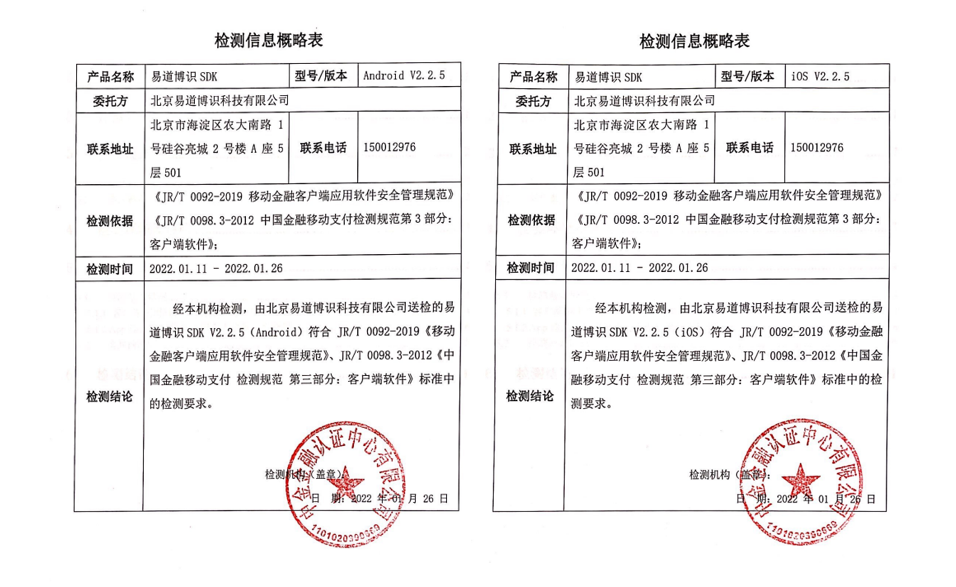 本次通過(guò)安全能力測(cè)評(píng),是對(duì)易道博識(shí)SDK優(yōu)質(zhì)產(chǎn)品能力及符合安全合規(guī)要求的有力證明。