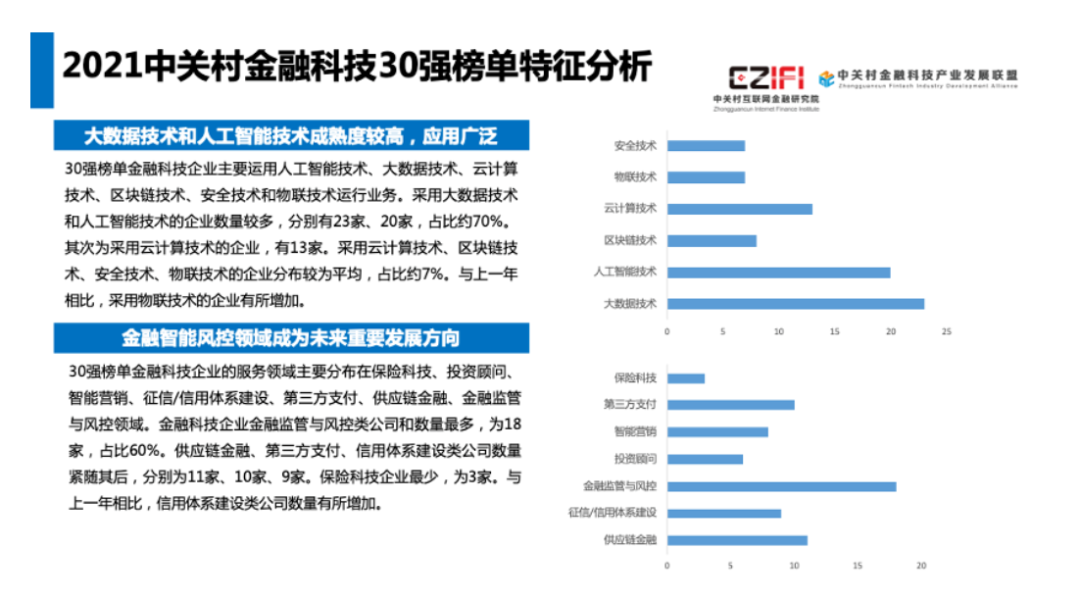 入圍30強榜單的企業(yè),代表其具有較高的行業(yè)影響力,擁有前沿技術,示范應用效果較好,具備核心競爭力與持續(xù)成長潛力,對于未來加快推動金融科技行業(yè)主體與重大項目創(chuàng)新發(fā)展具有重要意義。