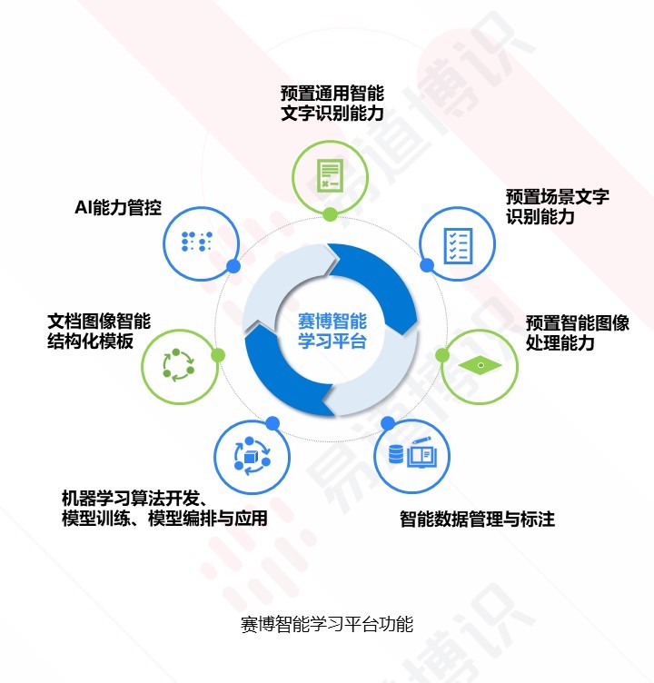 “賽博智能學習平臺”擁有預置通用智能文字識別、預置場景文字識別、預置智能圖像處理、智能數據管理與標注、文檔圖像智能結構化模板、機器學習算法開發與模型訓練以及模型編排與應用、AI能力管控七大核心能力,并在算法、數據、訓練、部署層面擁有核心的技術競爭優勢。