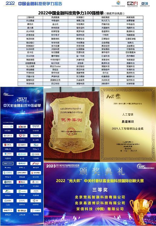 在此期間,易道博識不僅連續(xù)數(shù)年獲得中關(guān)村金融科技30強、中國金融科技競爭力100強、中關(guān)村論壇國際技術(shù)交易大會-百項新技術(shù)新產(chǎn)品、中國互聯(lián)網(wǎng)經(jīng)濟論壇-人工智能領(lǐng)航企業(yè)金i獎等,更多次入圍各專業(yè)領(lǐng)域聯(lián)盟、協(xié)會、媒體評選的人工智能、金融科技等相關(guān)榜單、獎項和優(yōu)秀案例等。