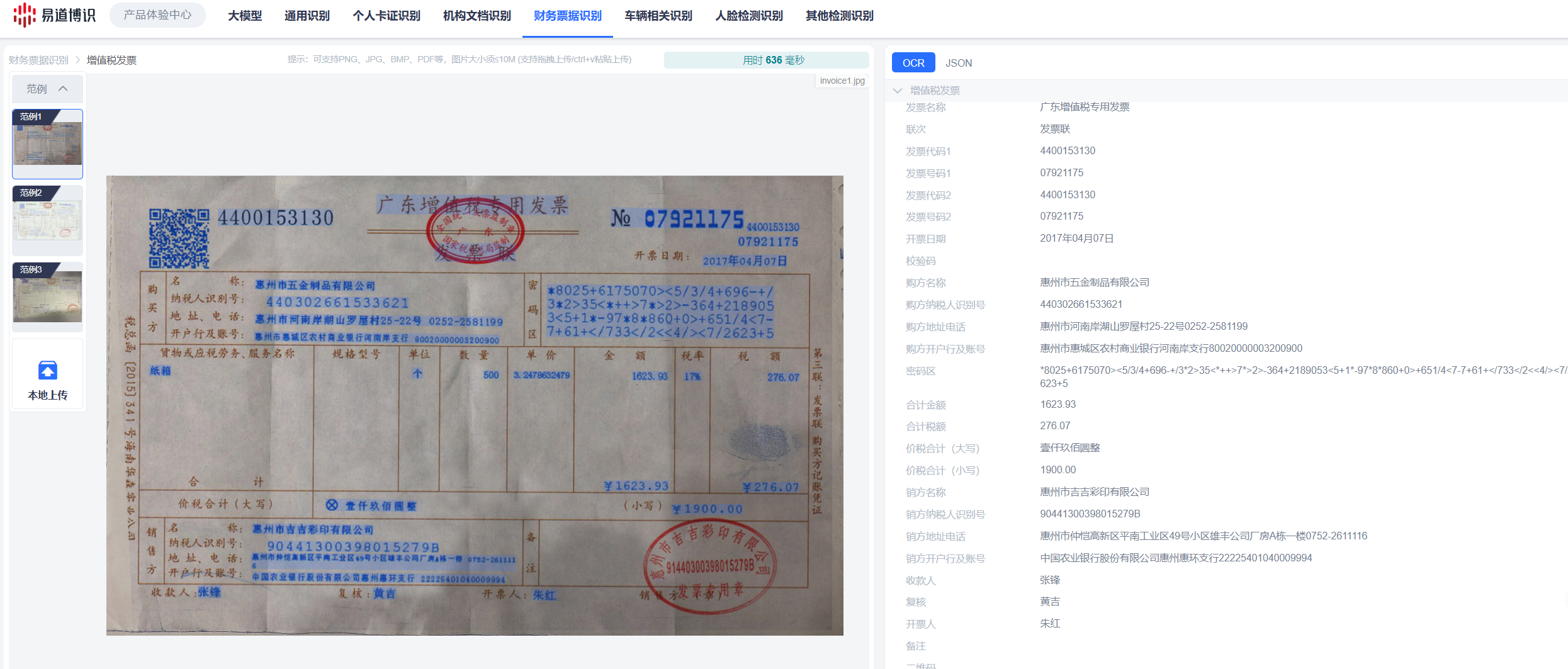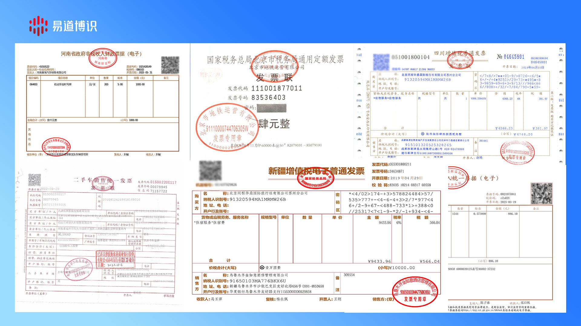 1.易道博識:提供7大類,60多種主流OCR識別場景,覆蓋主流識別需要,比如身份證、銀行卡、發票/報銷票據等,還支持財務報表識別、銀行流水單識別,文字識別精度超99.5%,非常適合企業的文檔OCR識別需求。